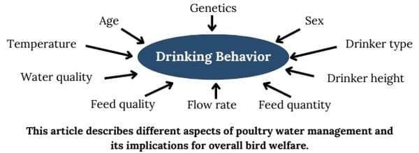 طیور از جمله مرغها نیز به میزان مشخصی از آب نیاز دارند که بسته به سن، وزن و نوع پرورش متفاوت است. مرغهای تخمگذار به طور متوسط روزانه بین 200 تا 400 میلیلیتر آب مصرف میکنند. جوجههای گوشتی نیز در طول دوره پرورش به آب زیادی نیاز دارند که مصرف آنها به تدریج با رشد افزایش مییابد و ممکن است تا حدود 400 تا 600 میلیلیتر در روز برسد.